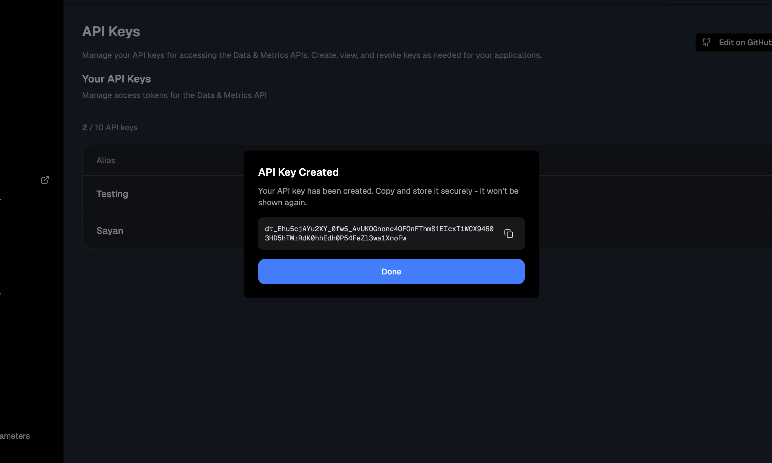 Always keep your API keys in a secure environment. Never expose them in public repositories, such as GitHub, or share them with unauthorized individuals. Compromised API keys can lead to unauthorized access and potential misuse of your account.